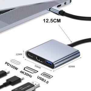 The 3 in 1 USB C Hub with 100W PD Fast Charging is the ultimate solution to expand your connectivity and boost your productivity. This sleek, compact, and powerful docking station transforms a single USB-C port into 3 essential ports, making it the perfect companion for your MacBook, Windows laptop, or compatible Android device.